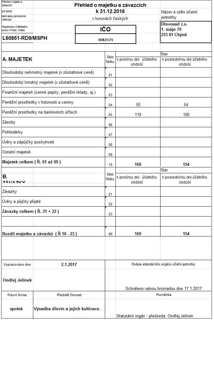 Výroční zpráva o činnosti a hospodaření spolku Dřevosad